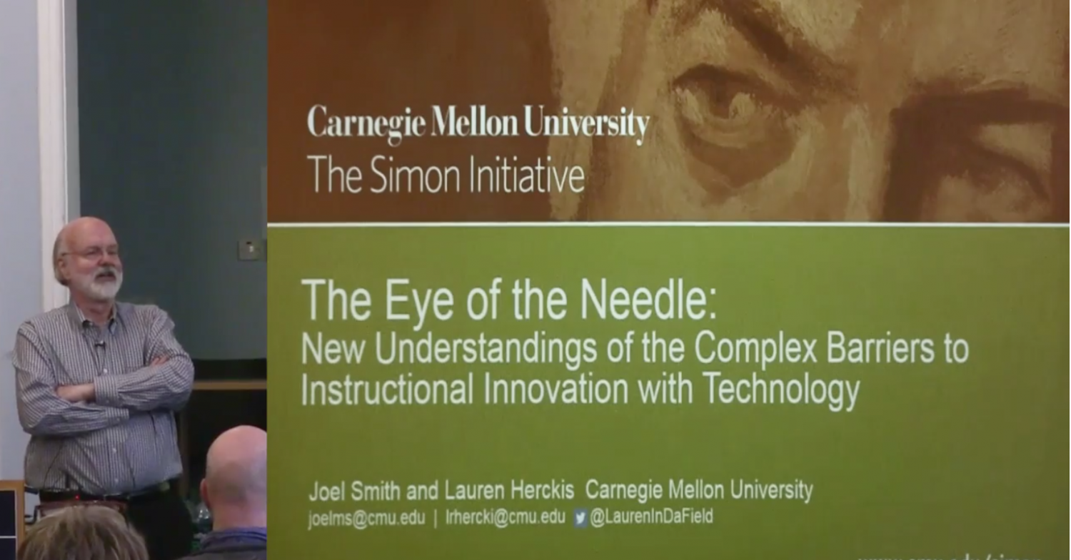 Educational technologies must "pass" a staggering number of litmus tests in order to be received favorably and used effectively by faculty. Why is it so hard to integrate new educational technologies into postsecondary education? Is there a recipe for success? Research at Carnegie Mellon University done by Lauren Herckis and Joel Smith has taken an anthropological approach to understanding the roadblocks and affordances to the effective implementation of educational technologies. Professor Smith will discuss results of this research, as well as suggestions about how to support faculty, students, and institutions striving to adopt evidence-based instructional tools and practices given the findings.